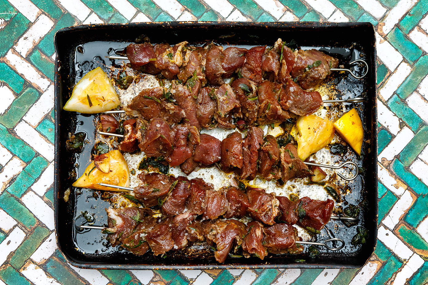 Our Greek inspired pork souvlaki skewers are made with tender pieces of pork fillet marinated in olive oil, garlic, oregano and spices. The skewers are then barbecued over hot embers and served on warm and fluffy yoghurt flatbreads with a good dollop of homemade tzatziki sauce. This is a great barbecue dish that you can prepare in advance, cook in no time and serve with your choice of salads and potatoes.