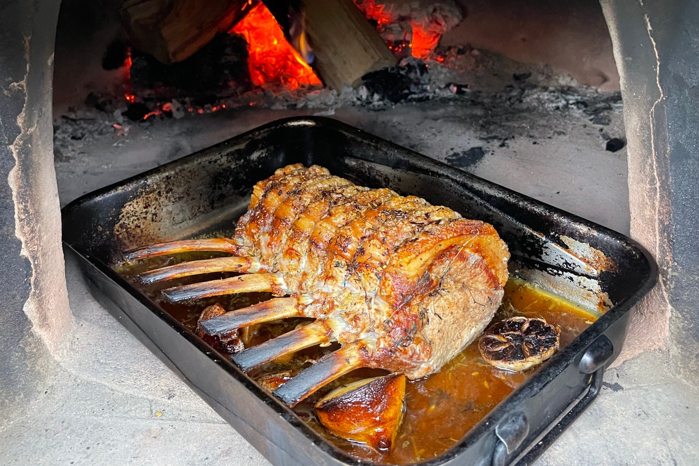 This is our best recipe for the perfect wood fired pork joint you will ever try! Beautiful pork loin rubbed with garlic, fennel seeds and lemon peel, roasted over wood embers for the perfect crispy crackling with a soft and succulent centre. You can use the roasting juices to spoon over the pork.