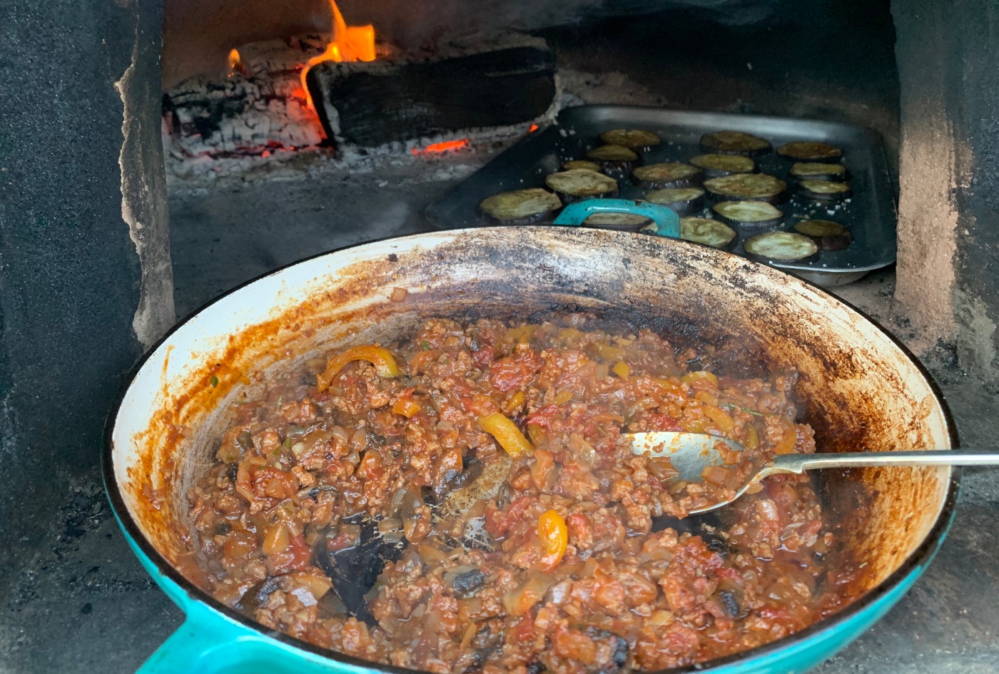 Learn how to bake a traditional moussaka in your wood-fired oven with this tasty recipe. The aubergine slices are browned in the wood-fired oven for a lovely smoky flavour, whilst the lamb mince is slowly cooked in red wine, tomatoes, oregano and cinnamon. The dish is then baked with a thick cheesy bechamel sauce until golden brown.
